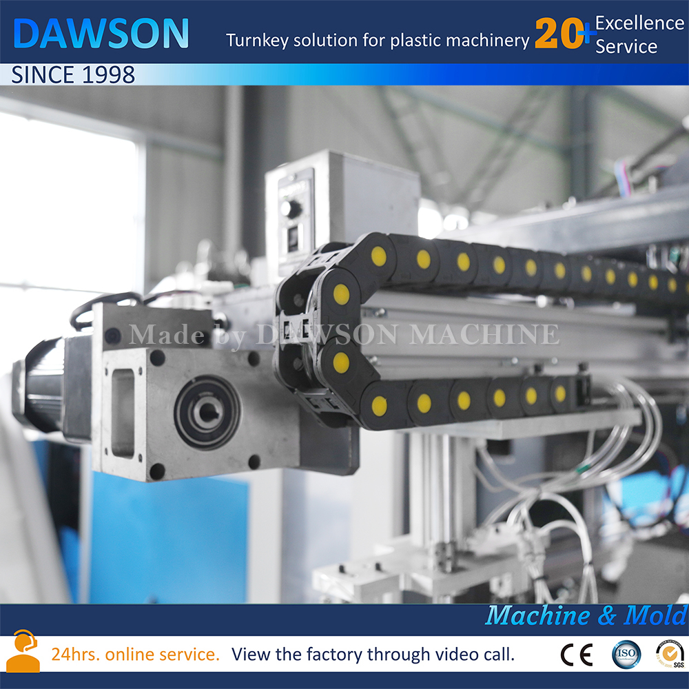 · Die Maschine ist mit einem Entnahme-Roboter ausgestattet und der Roboter legt die Flaschen auf den Flaschenförderer